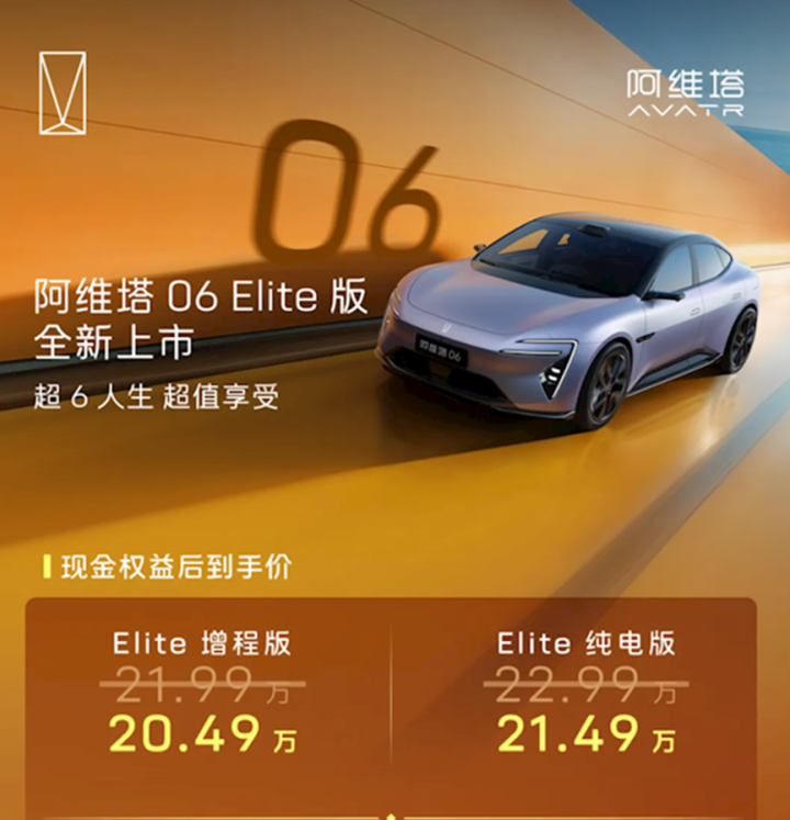 - 2025-11-19阿维塔06 Elite上市: 20.49万起, 标配